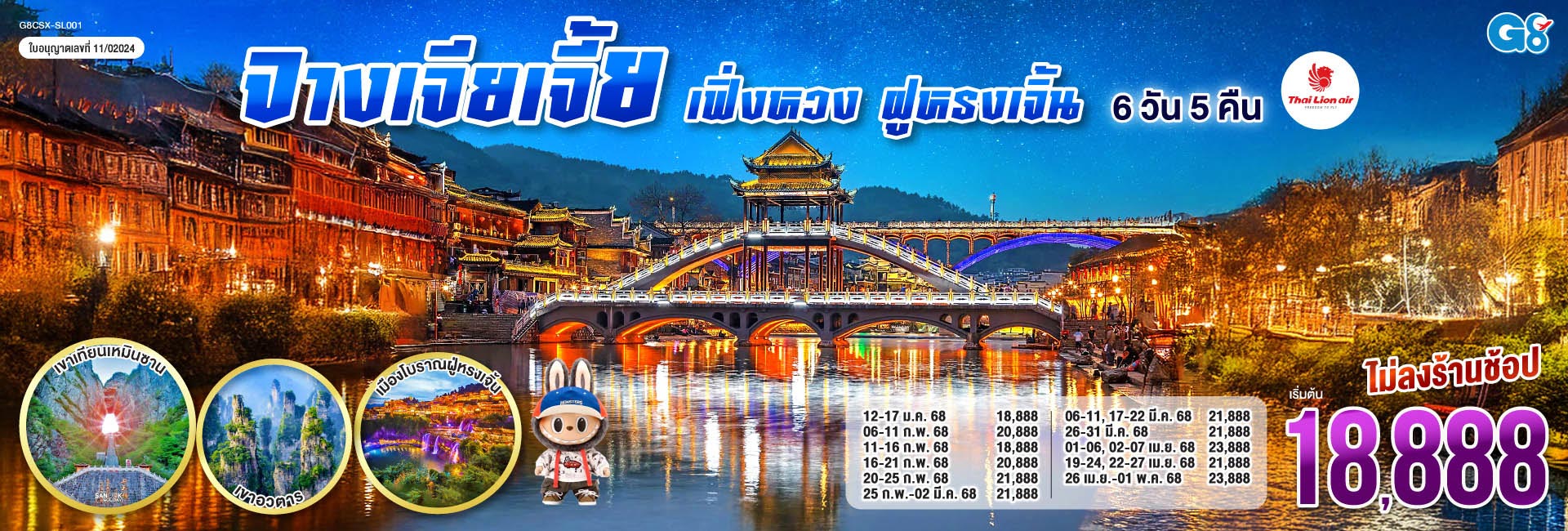 เฉิงตู ฉงชิ่ง อู่หลง ภูเขาสี่ดรุณี หลุมฟ้าสะพานสวรรค์ 6วัน 5คืน *ไม่ลงร้านช้อป โดยสายการบิน Thai Airways (TG)